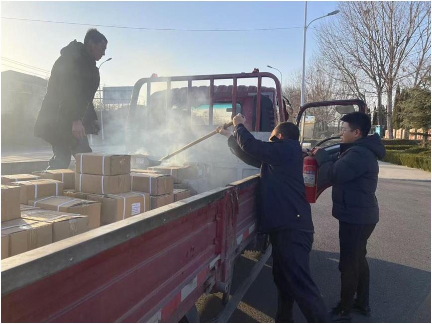 近日,即墨區(qū)北安街道綜合執(zhí)法中隊三名隊員在執(zhí)行巡查任務(wù),行至太和路時,發(fā)現(xiàn)一輛自東向西行駛的貨車貨箱起火。隊員們未作絲毫遲疑,即刻手持滅火器、鐵锨等工具下車,協(xié)助車主滅火。