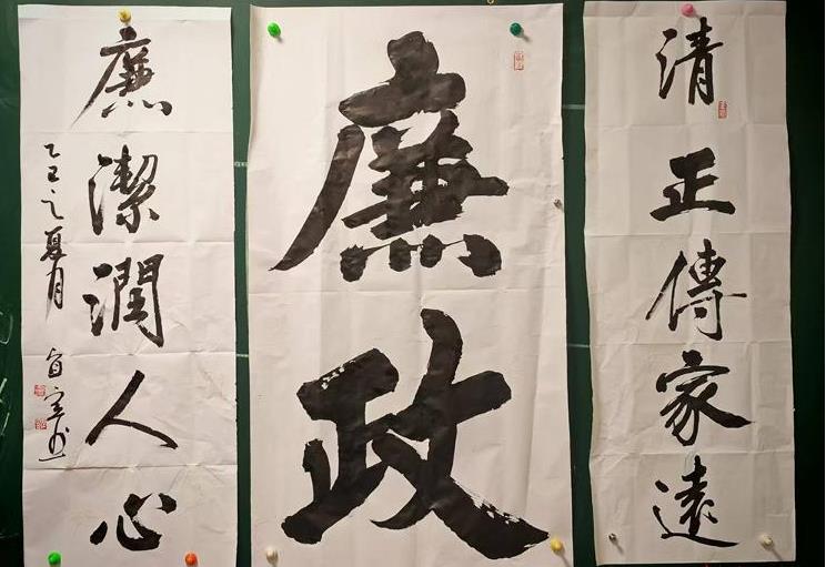 此次活動(dòng)以“清風(fēng)墨韻,廉潤(rùn)社區(qū)”為主題,將傳統(tǒng)文化與廉政教育巧妙融合;顒(dòng)現(xiàn)場(chǎng),書(shū)法愛(ài)好者們揮毫潑墨,其中以書(shū)法協(xié)會(huì)會(huì)員宋老師為首的書(shū)法家們以筆為劍、以墨為鋒,創(chuàng)作了一幅幅精美的廉政書(shū)法作品。“廉者,民之表也;貪者,民之賊也”“公生明,廉生威”等廉政名言警句躍然紙上,筆鋒剛勁有力,寓意深刻。這些作品不僅展示了居民們的書(shū)法技藝,更傳遞出大家對(duì)廉潔自律的追求和對(duì)廉政文化的深刻理解。