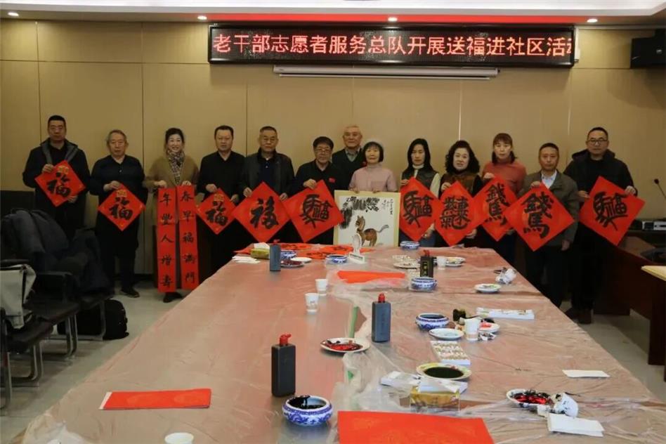 1月8日上午,區(qū)老干部志愿者服務(wù)總隊(duì)組織書法、繪畫直屬服務(wù)隊(duì)老干部志愿者到藍(lán)村街道振興社區(qū)開展“新春送!彼臀幕M(jìn)社區(qū)活動(dòng)。