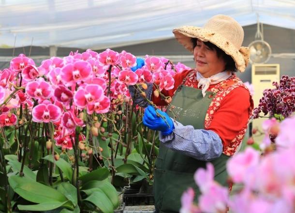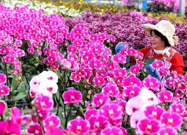1月25日,花農(nóng)在青島市即墨區(qū)靈山花卉文化產(chǎn)業(yè)園管護(hù)花卉。 春節(jié)臨近,山東省青島市即墨區(qū)靈山花卉文化產(chǎn)業(yè)園的年宵花迎來(lái)生產(chǎn)和銷售旺季,花卉大棚內(nèi)的蝴蝶蘭、長(zhǎng)壽花、仙客來(lái)等競(jìng)相綻放,花農(nóng)們按照訂單外運(yùn)各類花卉,供應(yīng)節(jié)日市場(chǎng)。 新華社發(fā)(梁孝鵬攝)