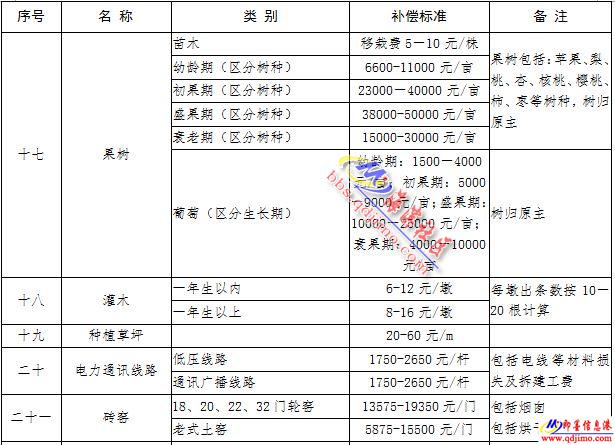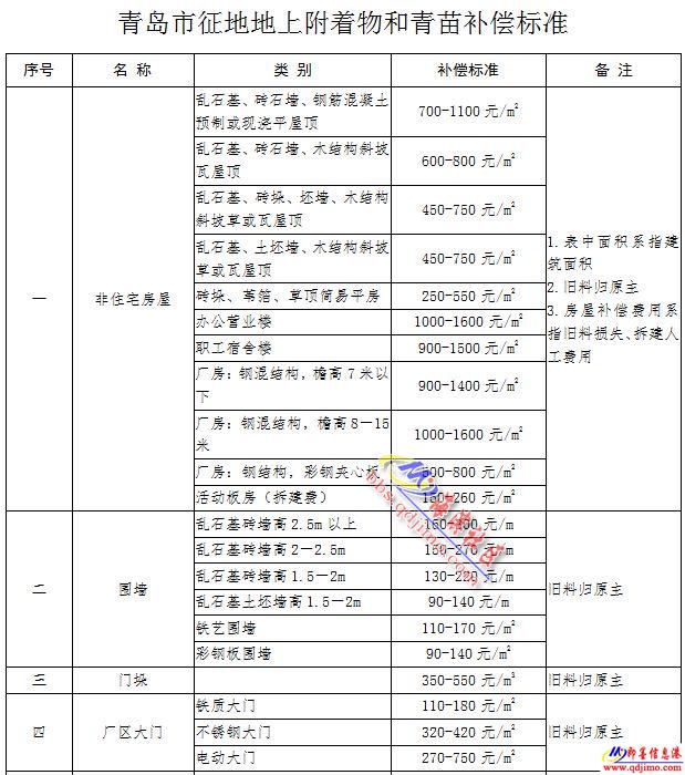 1.此表適用于青島市征地地上附著物補(bǔ)償標(biāo)準(zhǔn)。