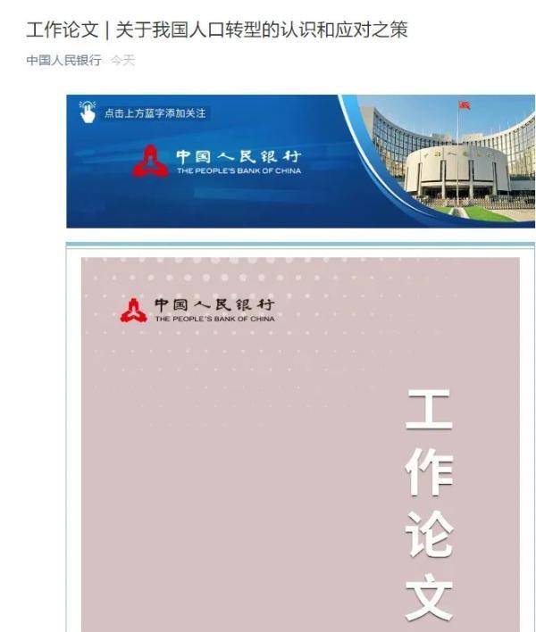 連央行的工作論文也關注人口問題了!
