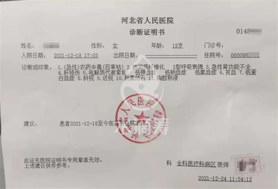 [b]警方通報(bào): 姐夫因“家人瞧不起自己”產(chǎn)生報(bào)復(fù)念頭 2021年12月29日,河北邢臺威縣公安局發(fā)布警情通報(bào)稱:2021年12月17日22時(shí)許,我局接報(bào)警,轄區(qū)居民馬某(女,18歲)在醫(yī)院住院治療時(shí),尿液中檢出百草枯成分,懷疑被其姐夫陳某投毒。