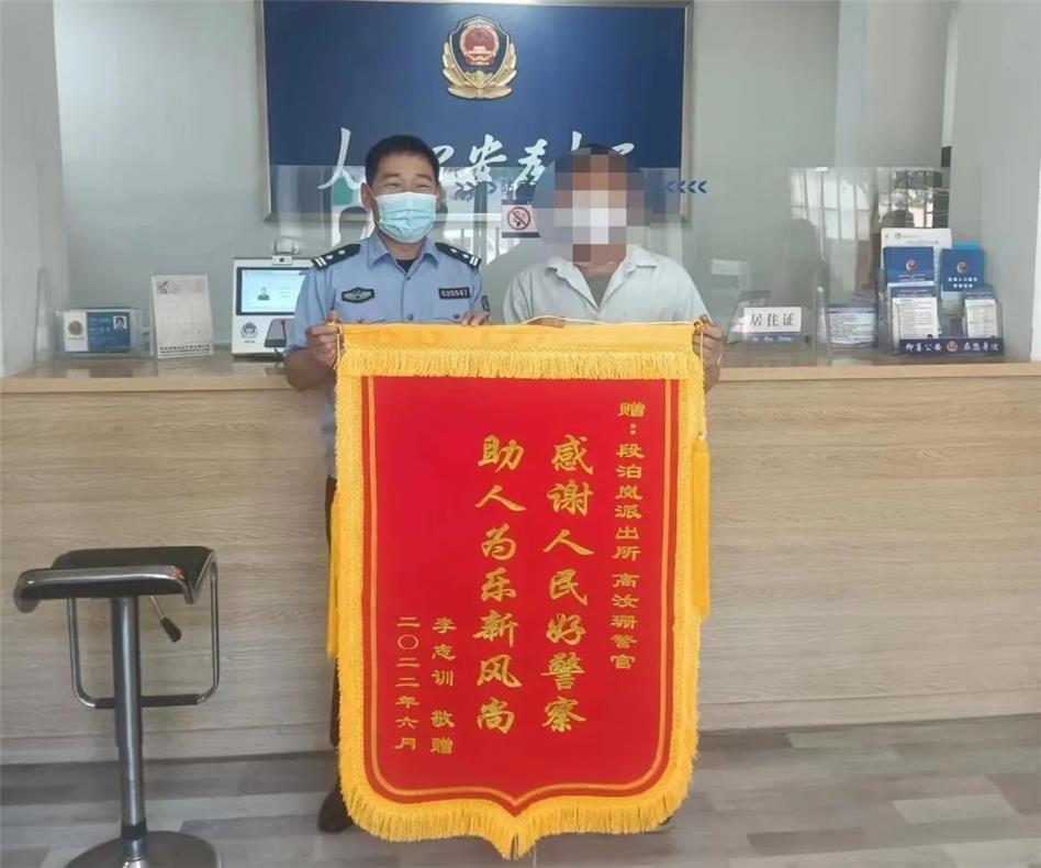 及時救助受傷群眾。6月20日,李先生在家人陪同下將繡有“感謝人民好警察、助人為樂新風尚”的錦旗送到段泊嵐派出所,表達對人民警察深深的感激之情。