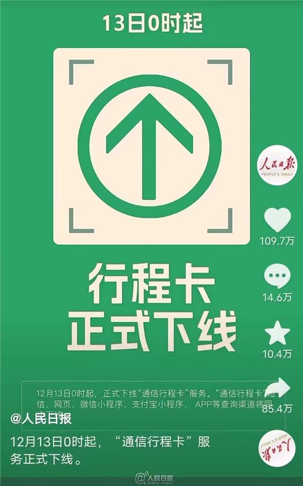 官宣!“行程卡”13日起正式下線!