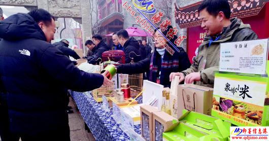 1月12日,來即墨古城過大年活動隆重開幕,在學宮東南側“瑯琊王氏祖脈坊”下,即墨鄉(xiāng)村振興工作隊“第一書記”駐村特色農產品展區(qū)吸引了大批游客駐足!疤镄∧ァ、“罡彬百草緣”、泉嶺小米、栗林蘿卜、金口芹菜、白廟芋頭地瓜等60余種地道的農特產品和手工藝品進行集體展示和銷售,線上線下同步銷售,憑借綠色健康的生產技術、傳統(tǒng)的味道和平民的價格引來不少市民購買。