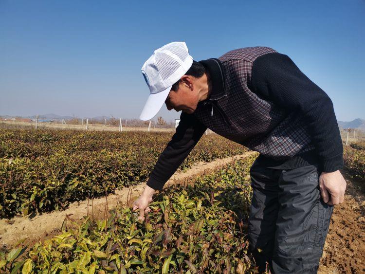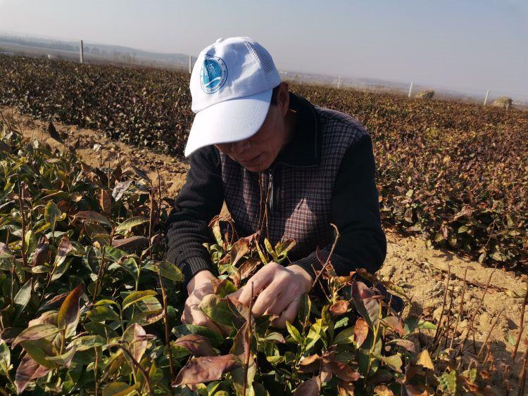隆潤(rùn)茶園管理人孫友安正在悉心查看越冬茶樹的葉片