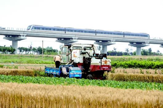 即墨輕軌沿線的麥田開(kāi)始收割了。