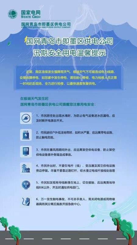 國(guó)網(wǎng)青島市即墨區(qū)供電公司汛期安全用電溫馨提示