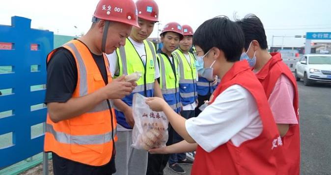 活動結(jié)束后,新時代文明實踐志愿者帶著新鮮烤制的月餅,來到周邊的青島百聯(lián)奧特萊斯廣場、三城路改擴建工程等建設(shè)工地,為堅守崗位而無法返鄉(xiāng)過節(jié)的建設(shè)者們送去一份“驚喜”。
