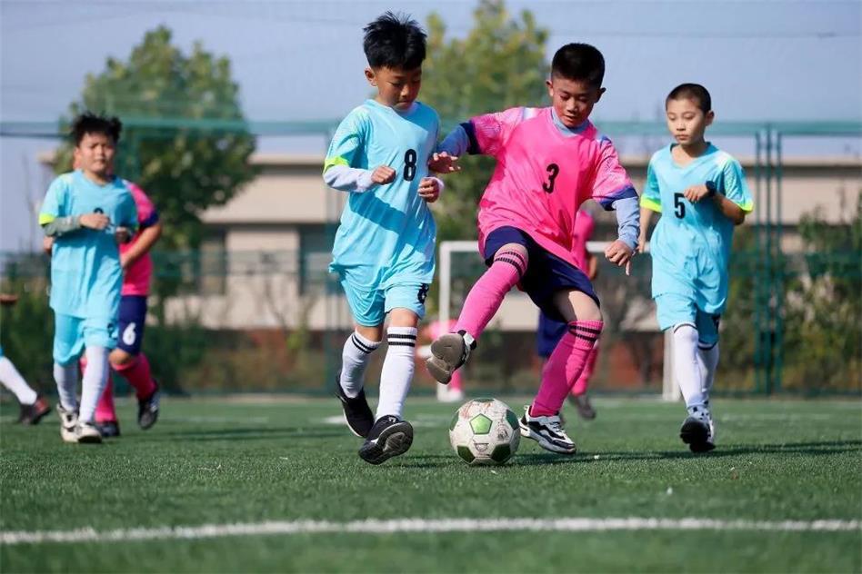 即墨區(qū)龍山街道團(tuán)彪莊村的小學(xué)生在足球場踢球。