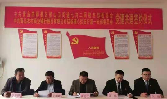 黨建共建結(jié)對子,高質(zhì)量發(fā)展互促進。七溝二網(wǎng)格支部與青島農(nóng)商銀行硅谷核心區(qū)支行第一支部以結(jié)對共建為依托,組織銀行黨員及業(yè)務(wù)骨干走進農(nóng)村,積極參與未來鄉(xiāng)村建設(shè),通過在七溝二村開設(shè)金融服務(wù)網(wǎng)點,以新金融、新理念、新技術(shù)推動農(nóng)村金融“新基建 ”,提升金融服務(wù)效能。