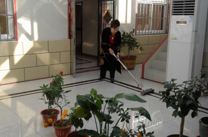 山東省青島市即墨區(qū)溫泉街道社生后街村農(nóng)民在打掃自己家的庭院衛(wèi)生