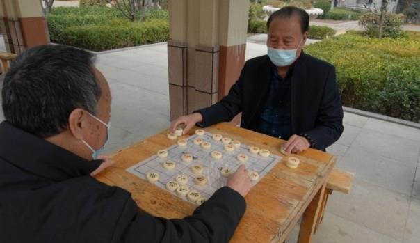 景岱社區(qū)居民徐振業(yè)和鄰居呂崇俊相約帶好口罩在樓下小亭里下象棋。徐振業(yè)愜意地說:“我們鄰居之間約定一起到樓下小亭子里下棋,現(xiàn)在我們生活的很快樂。”