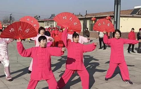 百合花秧歌隊進行功夫扇表演