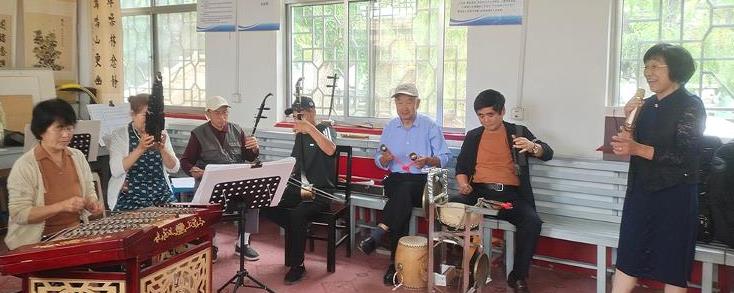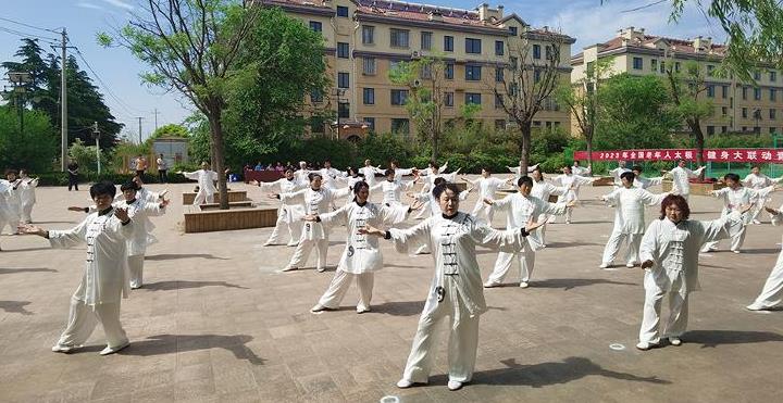在王演莊北村黨建廣場,身著統(tǒng)一服裝的老年人太極拳隊(duì)伍精心準(zhǔn)備了東岳太極拳、健身氣功馬王碓、36式太極刀、63式太極劍和韜鈞刀表演,引得群眾連連喝彩;在王演莊社區(qū)紅葉詩社,區(qū)老體協(xié)領(lǐng)導(dǎo)們與老年書法愛好者們交流書法繪畫藝術(shù),交談甚歡;在南泉村公園,南泉村民樂藝術(shù)俱樂部的藝術(shù)愛好者們齊聚一堂,文藝氣息撲面而來,演奏聲與歌唱聲相得益彰,悠揚(yáng)的樂聲久久沒有散去。