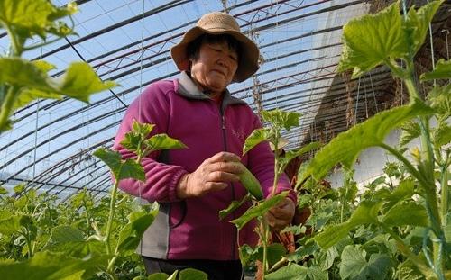 正在采摘黃瓜的村民蘇建華喜滋滋地說:“冬種一座棚,賽過一年糧食好收成。如今黃瓜五塊多一斤,我這一冬天光賣黃瓜也得收入四、五萬元呢!彼f:“冬天在家閑著也是閑著,到大棚里來管理照看著這些蔬菜,一天不看著,就好像心里缺少了點什么。再說了,大棚種植收入一年比一年好,蔬菜的種類也多了!彼乱桓S瓜說:“你看,這個品種的黃瓜口感稍脆,北方人喜歡吃!彼Σ[瞇地說:“現(xiàn)在就開始采摘,一直能采摘到春節(jié)后。隨著元旦、春節(jié)臨近,黃瓜的價格會越來越高”。