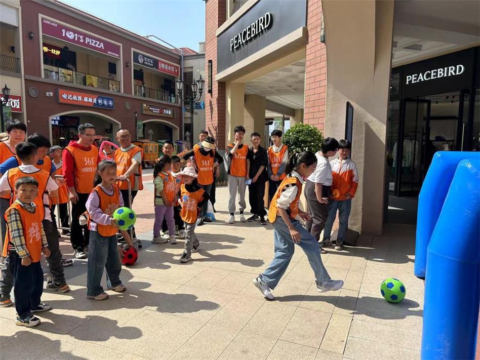 “加油加油!好球!”青島百聯(lián)奧特萊斯廣場(chǎng)內(nèi),一陣陣歡呼聲此起彼伏。“讓我來(lái)踢!”親子足球比賽場(chǎng)上,一位小朋友高興地喊道。