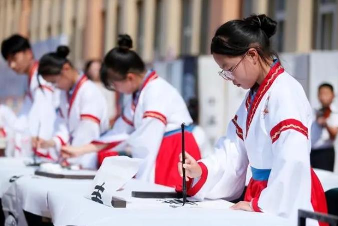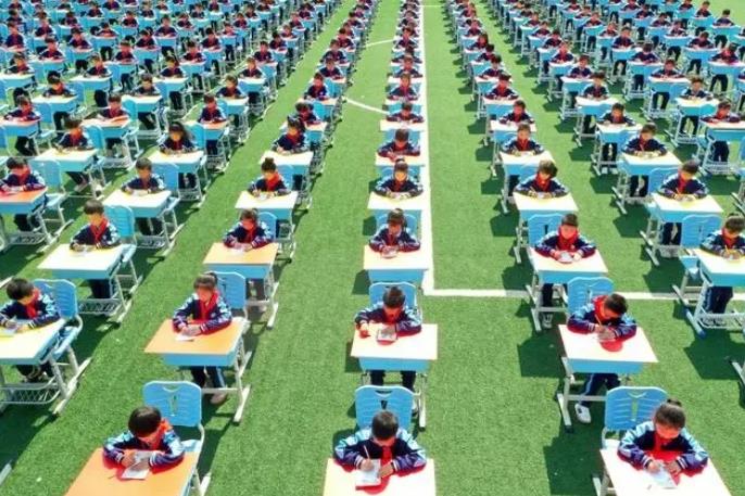 校園賽書法,即墨千名小學生操場“擺擂臺”