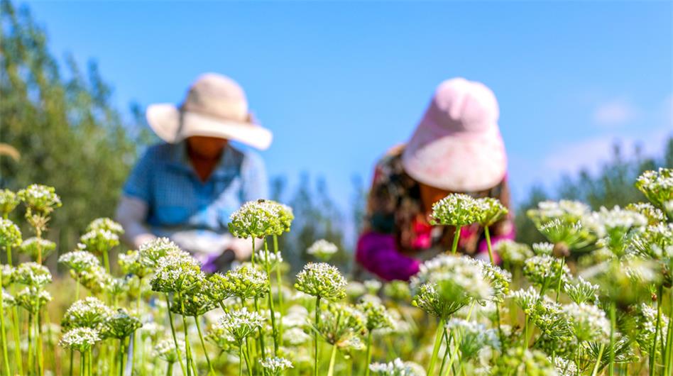 初秋時節(jié),山東省青島市即墨區(qū)靈山街道農(nóng)民種植的千余畝韭菜迎來盛花期。當(dāng)?shù)剞r(nóng)民加緊采摘,田間地頭一派忙碌。