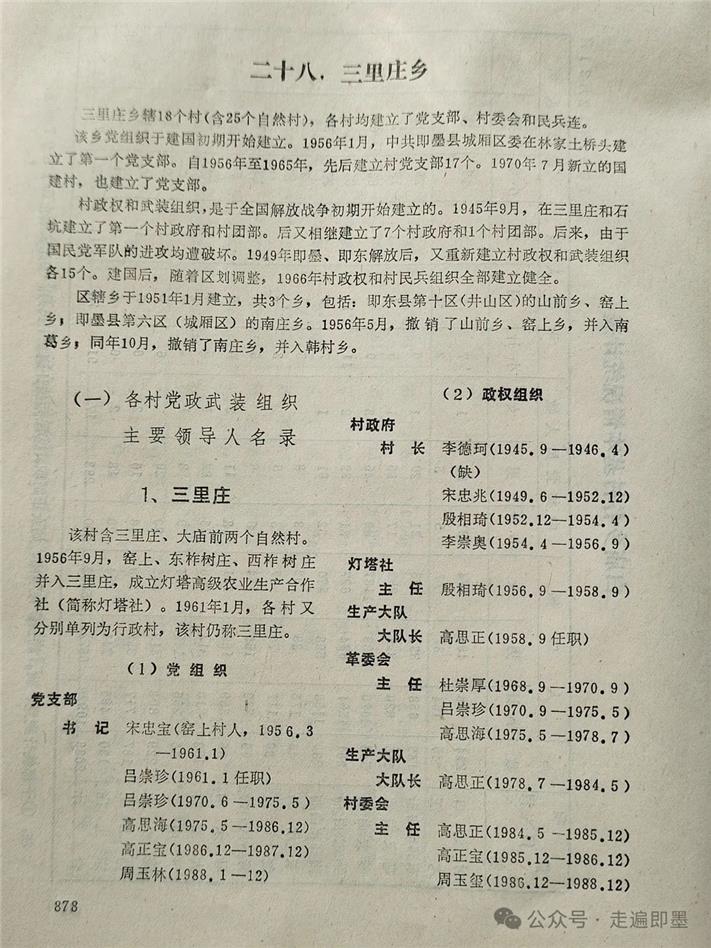 三里莊鄉(xiāng) 共18個(gè)村(即墨縣 村級組織史 資料1934~1988)