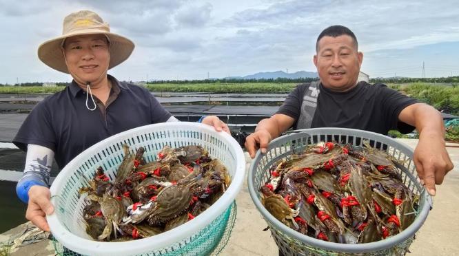 雖然距離伏季休漁結束還有一個月,但青島市即墨區(qū)田橫鎮(zhèn)養(yǎng)殖梭子蟹的豐收景象已然提前上演。30日上午,在田橫鎮(zhèn)營子村的蟹田中,呈現出一派繁忙的捕撈景象。一筐筐青殼白肚的梭子蟹剛離水,就被守候的冷鏈車迅速運往各地市場!敖衲晷纷觽頭大,味道鮮美!”56歲的養(yǎng)殖戶楊為華承包了近百畝蟹田,深知時機寶貴!斑@批是4月初精心投放的蟹苗,經過4個月生長,終于在8月前達到上市規(guī)格!