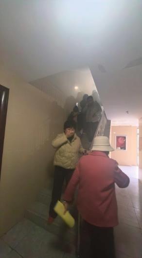 最后開展的是模擬疏散通道逃生環(huán)節(jié)。隨著“火情警報(bào)”響起,模擬居民樓著火場景正式啟動。在物業(yè)工作人員的引導(dǎo)下,居民們用濕毛巾捂住口鼻,彎腰低姿,沿著預(yù)定疏散路線快速、有序地撤離至安全區(qū)域。整個(gè)逃生過程緊張有序,大家嚴(yán)格遵循逃生規(guī)范,展現(xiàn)了良好的應(yīng)急反應(yīng)能力。隨后,消防員迅速啟動滅火處置程序,熟練操作消防設(shè)備對著火點(diǎn)進(jìn)行模擬撲救,專業(yè)的處置流程讓居民真切感受到消防救援的速度與力量。